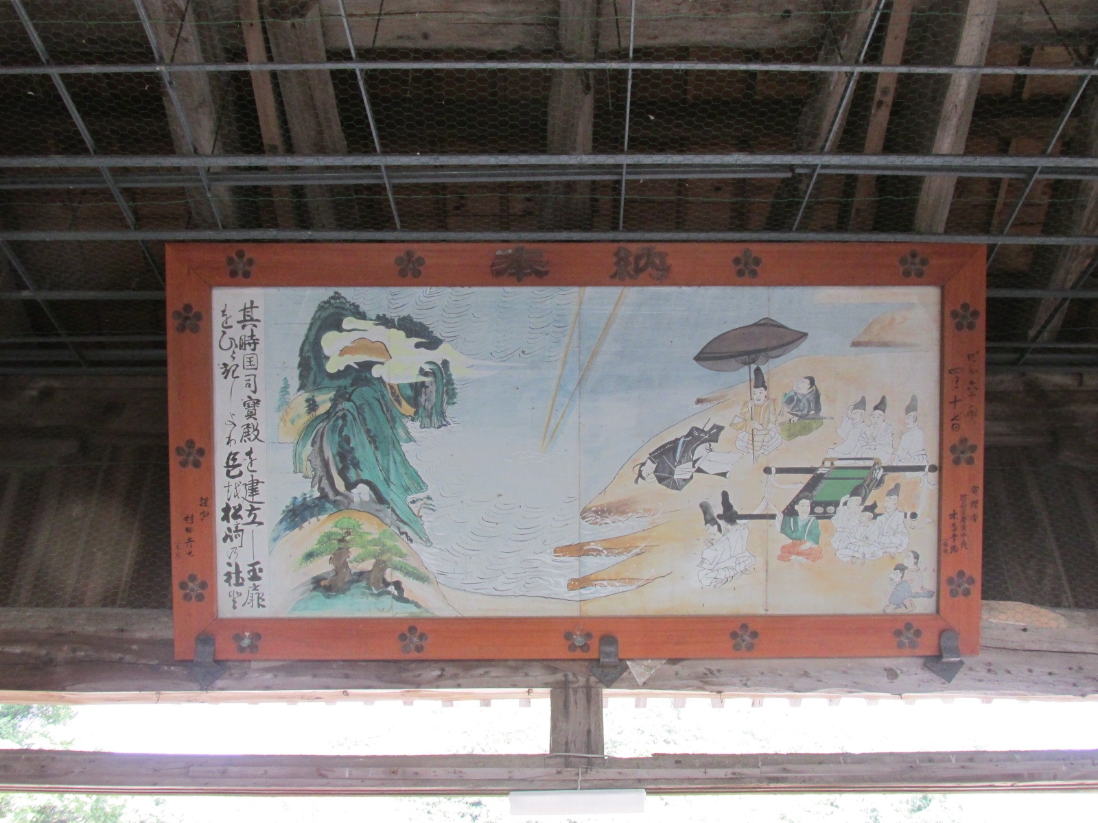 | 奉納されていたもの。龍の額は凄い | 天井 | 遠目から見る春風楼 | ||