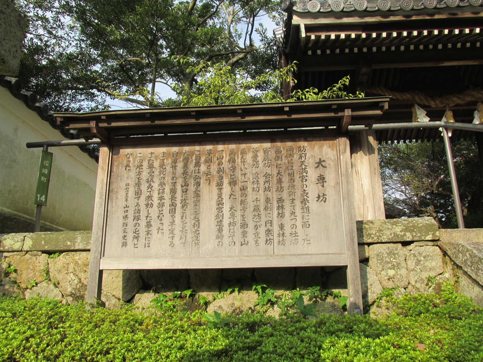 | 毛利重就公 | 菅公廟の碑 解説板が木に埋もれております |