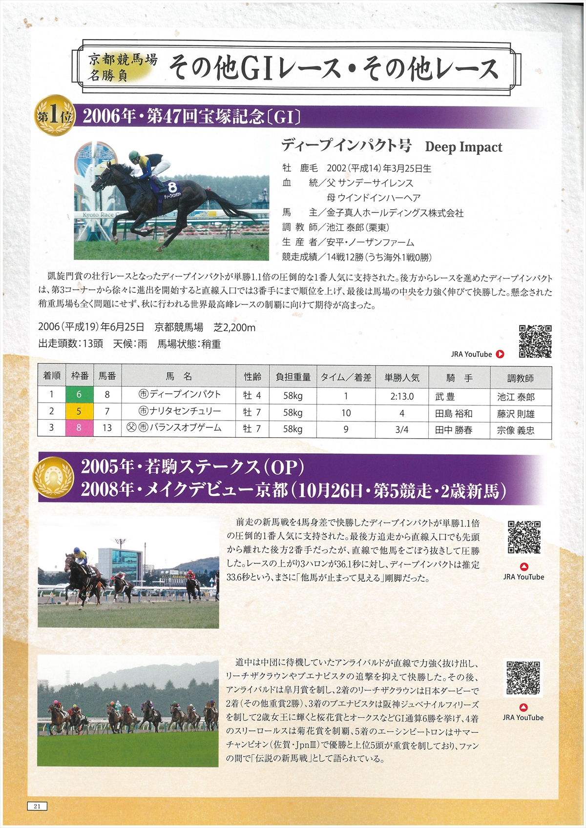 あとは、ライスシャワーがどの程度取り上げられているかを見ることになりますが……なんとこんなところにたてがみ!さらに年表ではライスシャワー碑の建立が写真入り。いつもながら、スティルインラブ碑の扱いの悪さはなんとかならんもんでしょうかね。