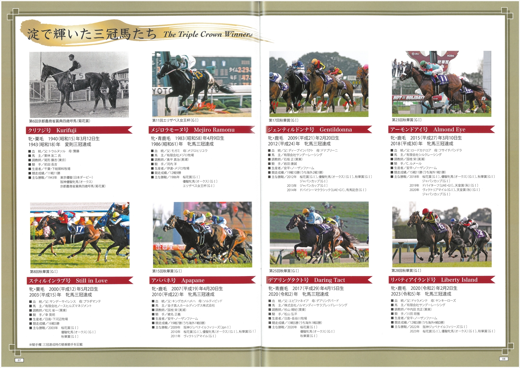 | 年表 | 三冠馬。埋め合わせかもしれんけど、クリフジもいます | コース | 誘導馬 | マップ | |