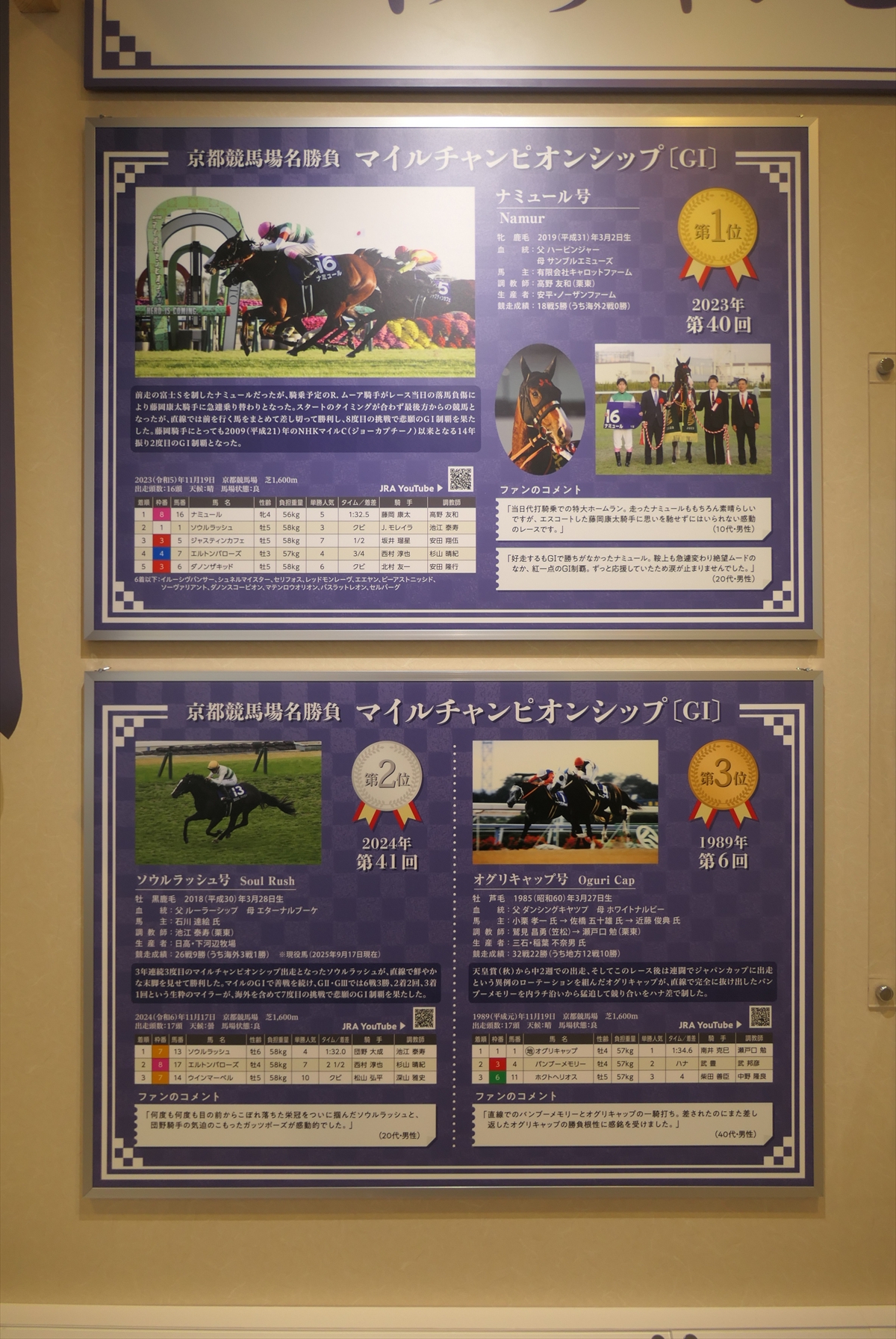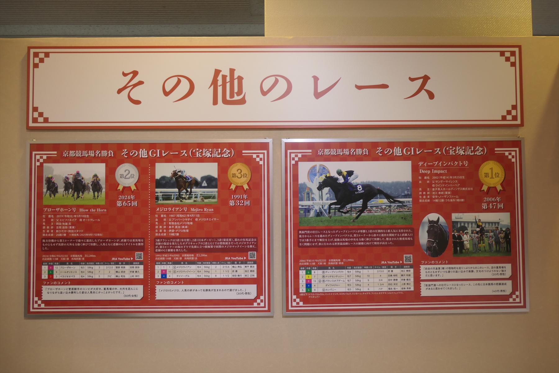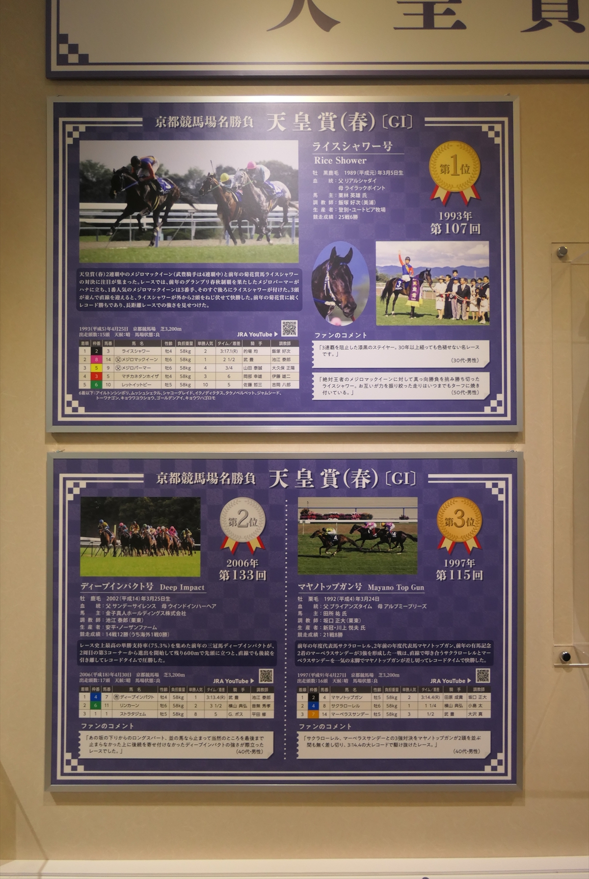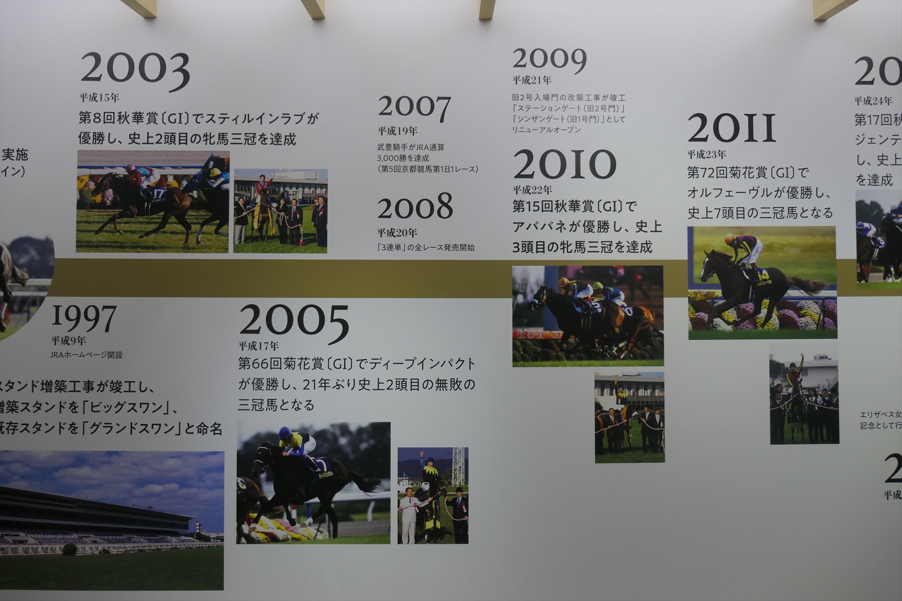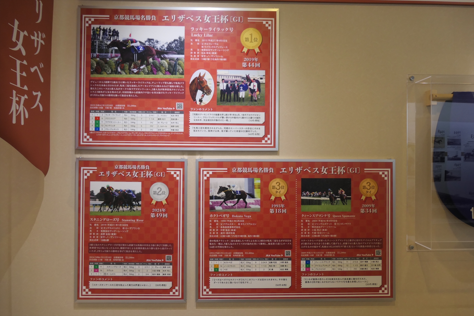 秋華賞とエリザベス女王杯も行われておりますので、それらの展示も。ぶっちゃけ、秋華賞なんかはレースがまったく思い出せない。
