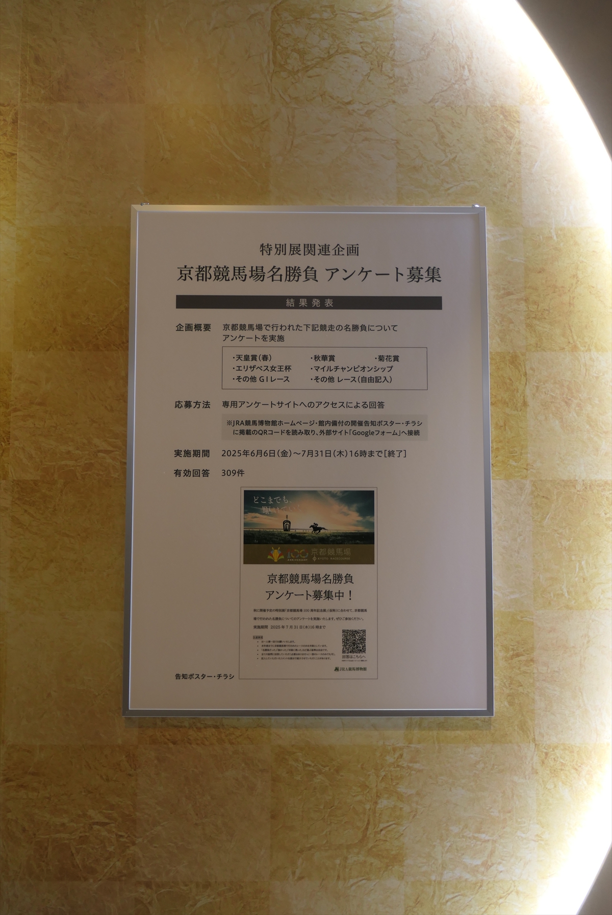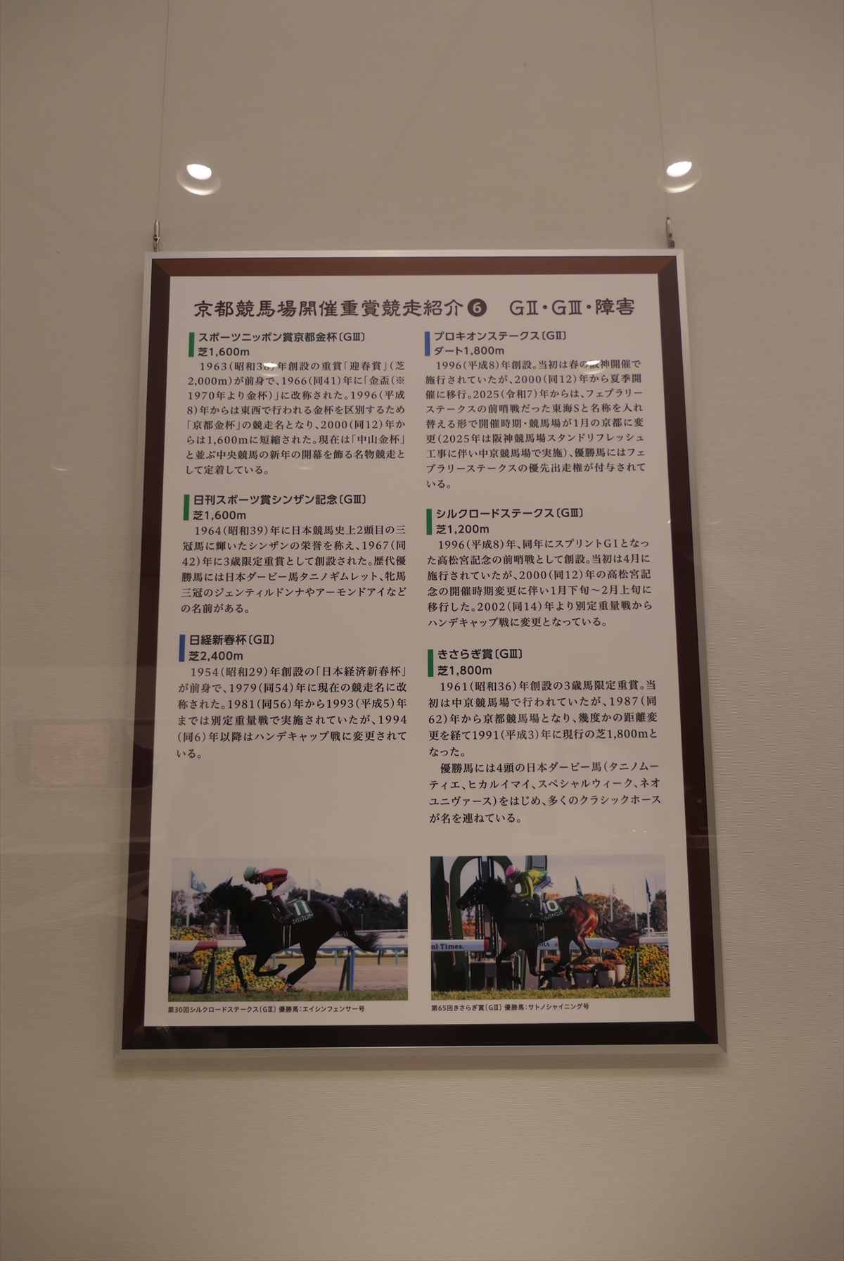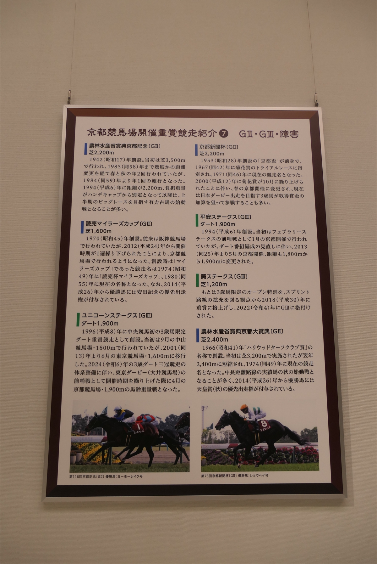 展示の構成としては、京都競馬場の通史、名勝負アンケート、重賞紹介という感じです。