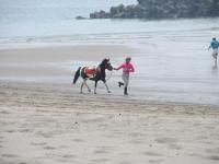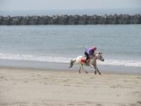 | 遠くで何かが起きている | 横に広がってます | 綺麗な馬だなー | 併せ馬 | サラブレッドを見慣れてると ポニーの上に人が乗るのが アンバランスに見えてしまう |