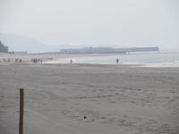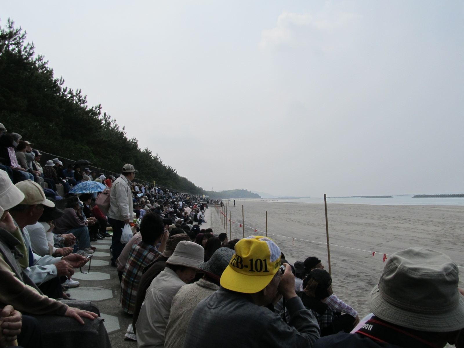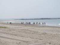 | 砂浜に蹄鉄の跡 | 浜辺 | 上から見下ろす | ゴミは各自お持ち帰りください ガムテープで貼り付けた 実行委員会の文字が美しい |