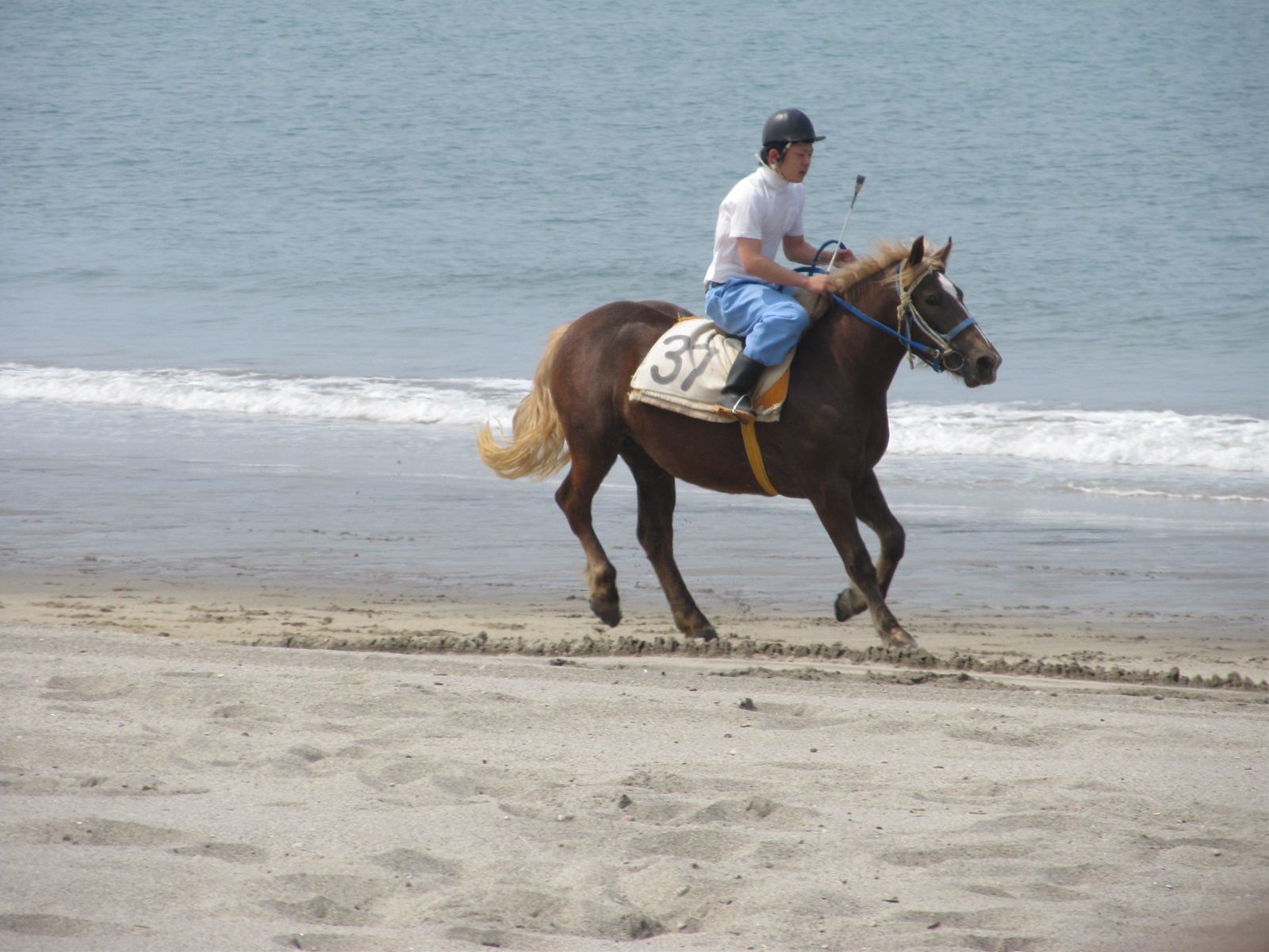 | 堤防の様子 | 上から降りてくる騎手 | レースの準備中 | ||