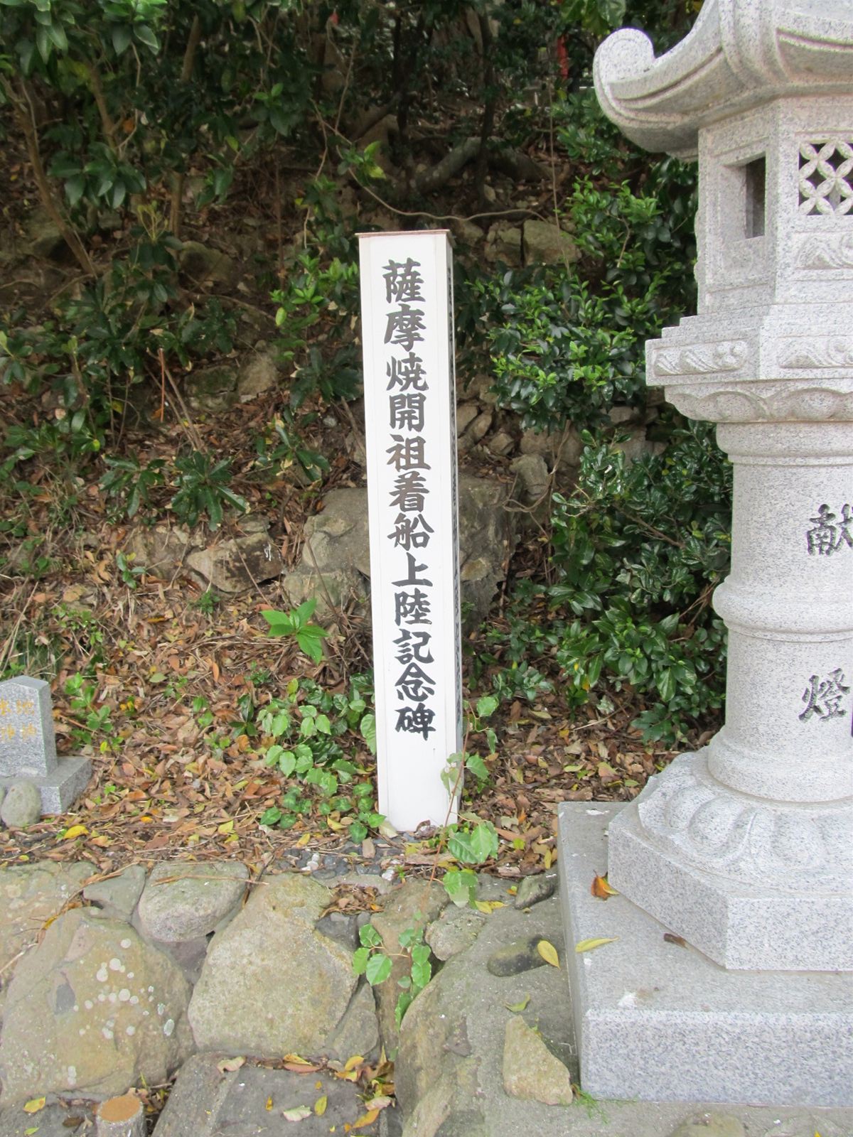 | 橋から浜の方角を見る | 薩摩焼開祖着船上陸記念碑 | 海に向かう鳥居 橋がない時代は ここから上陸したんでしょうか |