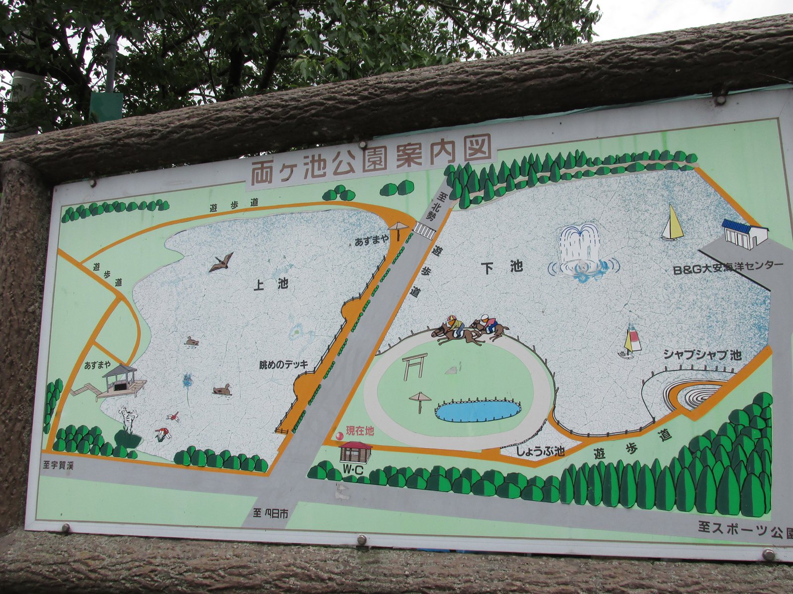 | 待機する馬たち | 本部桟敷 | 基本は3周 | 管理は大安愛馬会のようです | 公園案内図 | ||