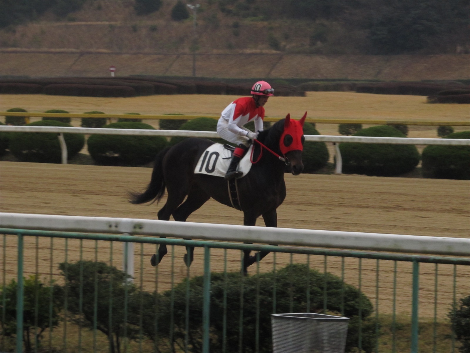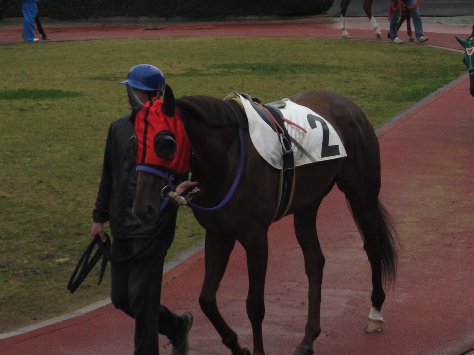 | 懐かしの煉瓦 | パドック | ボロくなっております | 相変わらずの手書きと右回り | 奥にいる馬は何なのか… |