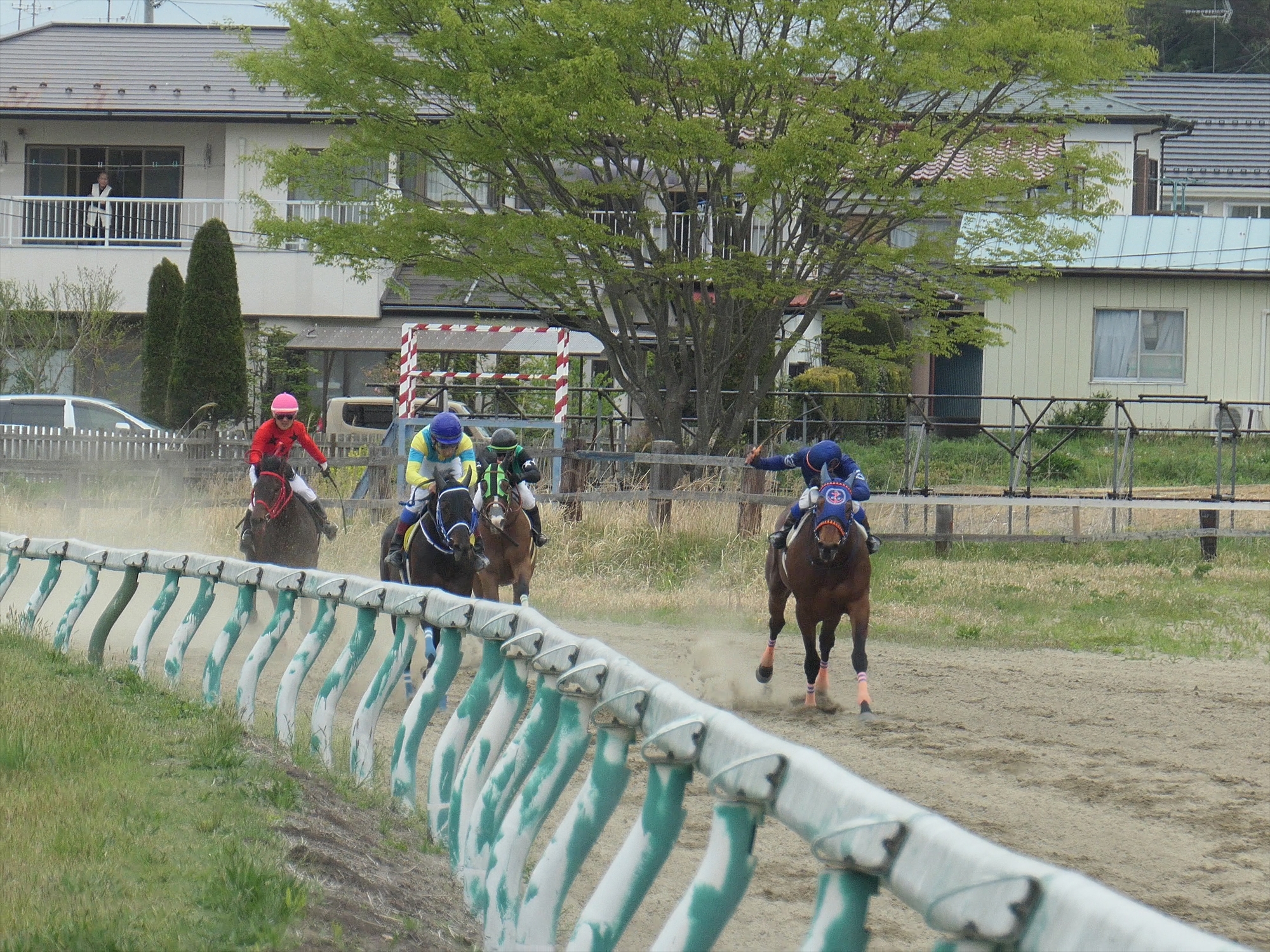 | 4コーナーへ向かっていきます | 遠くを走る馬を見つめる | 2周目 | 4コーナーから 最後の直線へ |