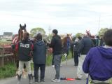 さあ、いよいよ予選レ-素が迫ってきました。| 幟がはためく レースになるとロープが張られて 馬場を横断できなくなります |
