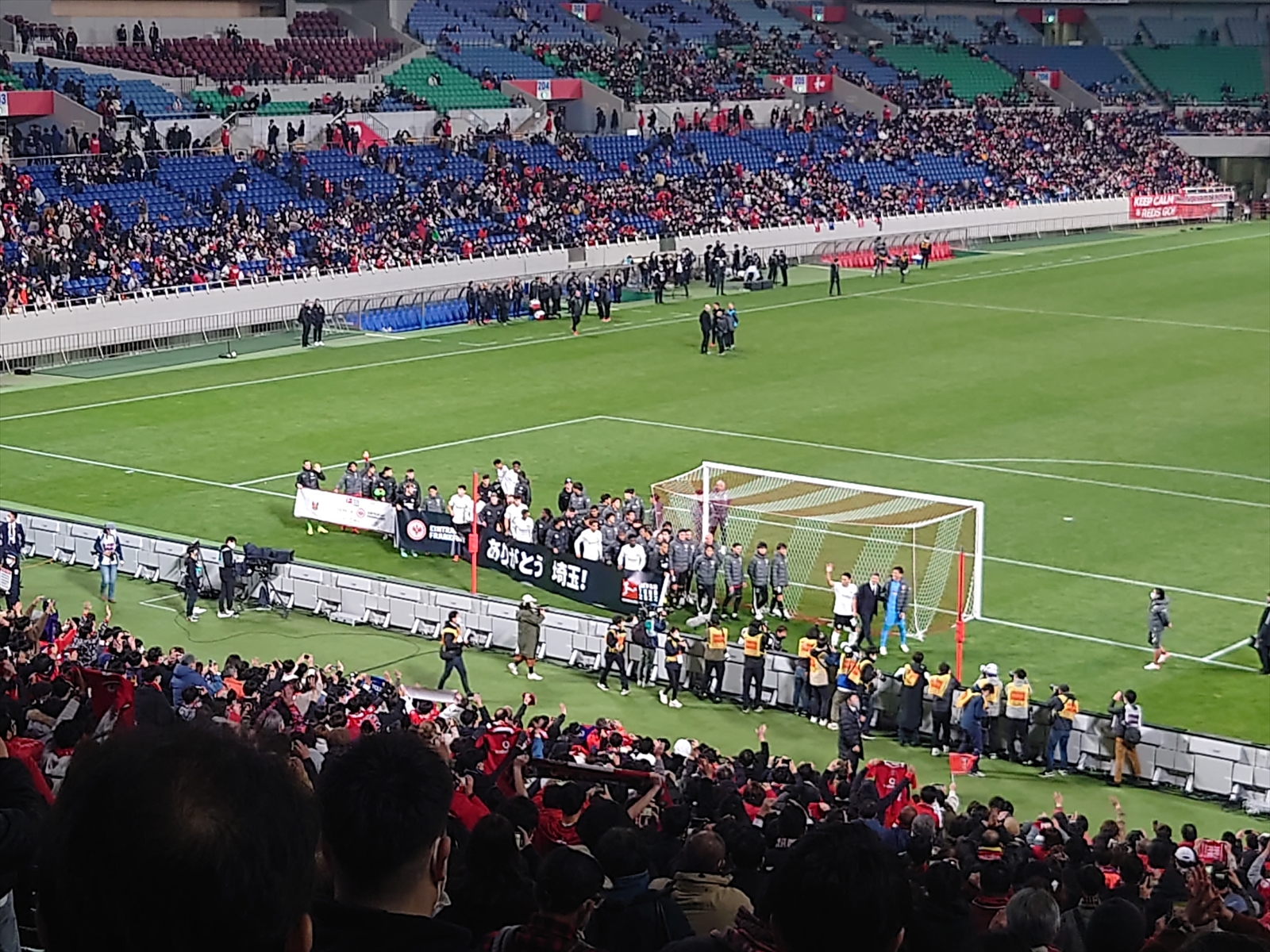 | 浦和サポの様子 | 円陣 | ユンカーと江坂も この日が見納めでした |