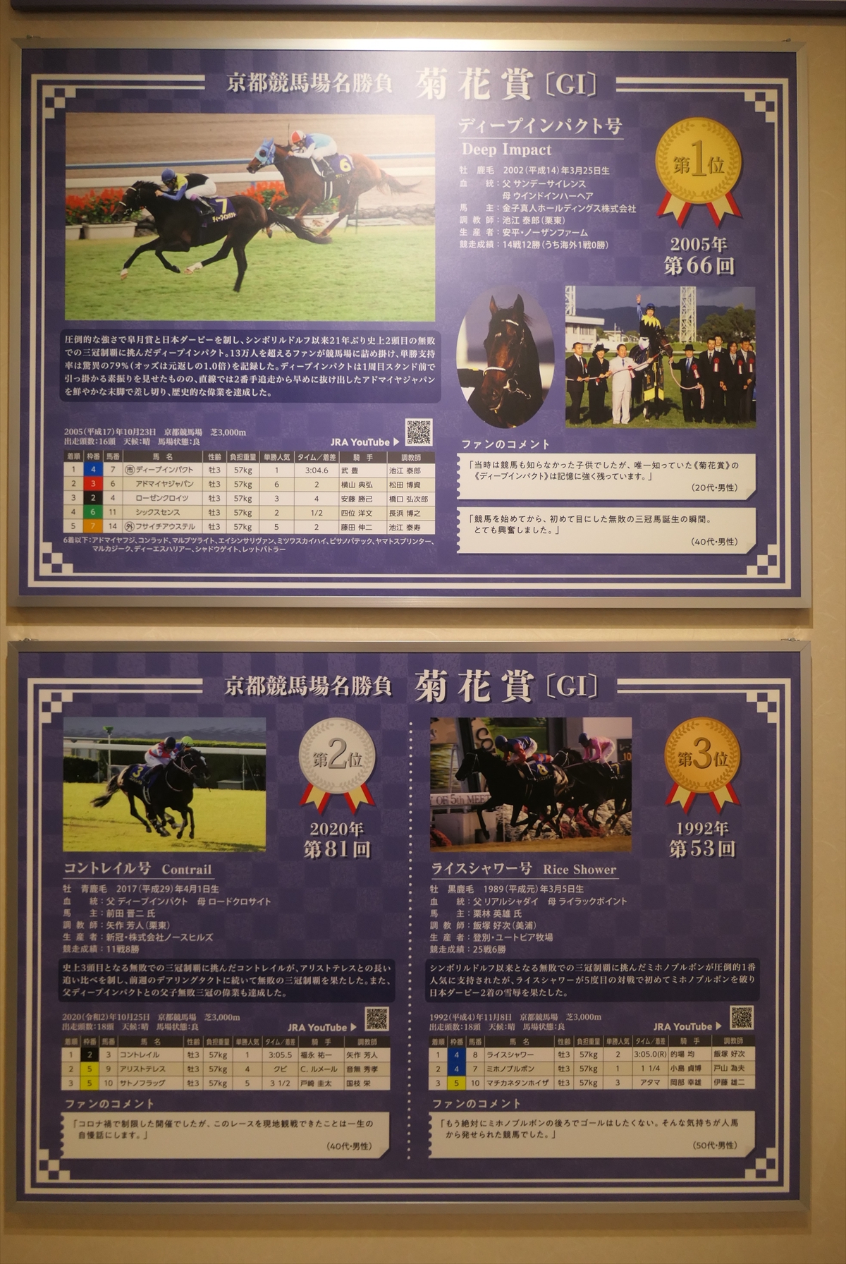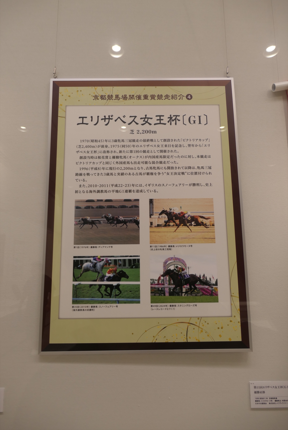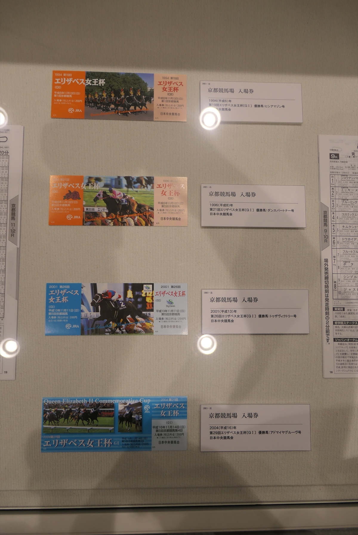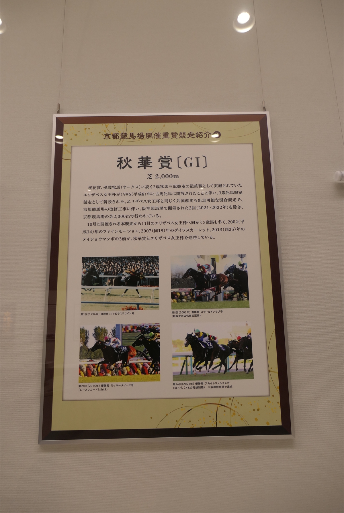 秋華賞とエリザベス女王杯も行われておりますので、それらの展示も。ぶっちゃけ、秋華賞なんかはレースがまったく思い出せない。