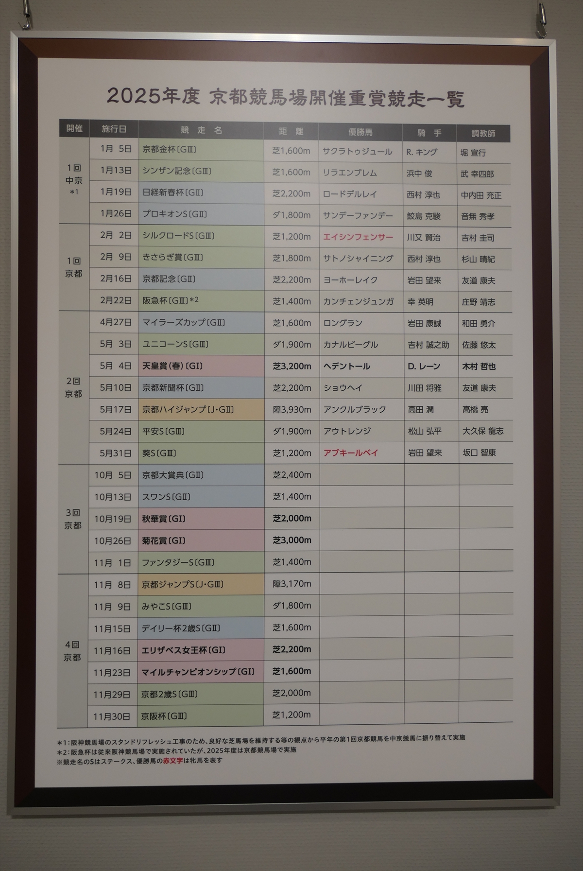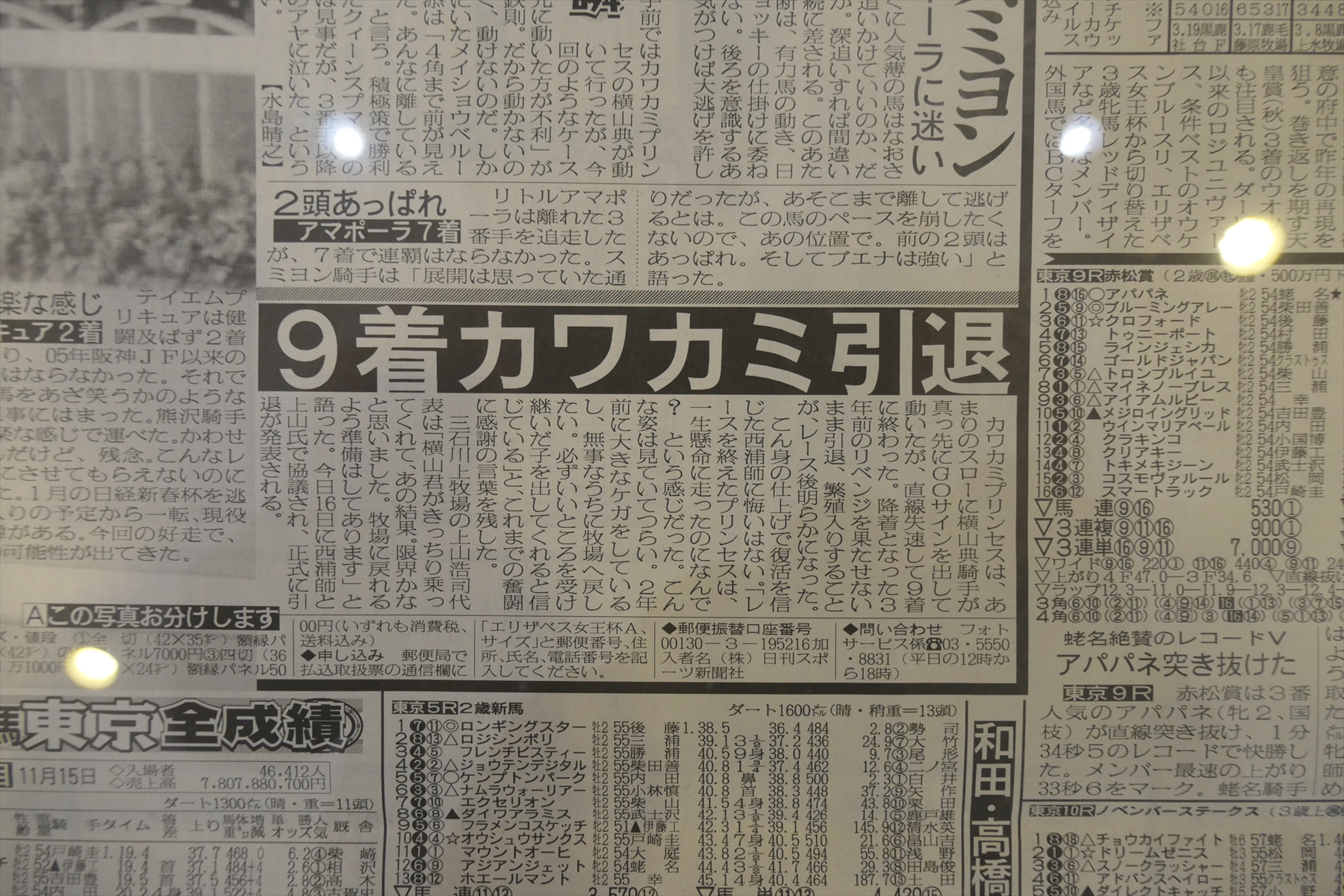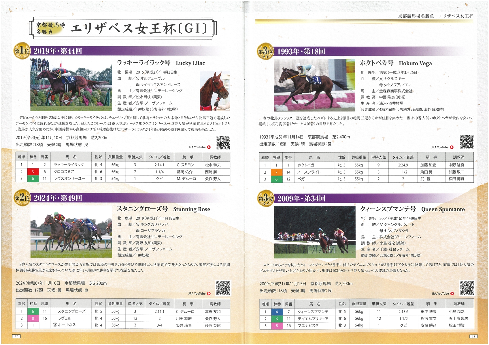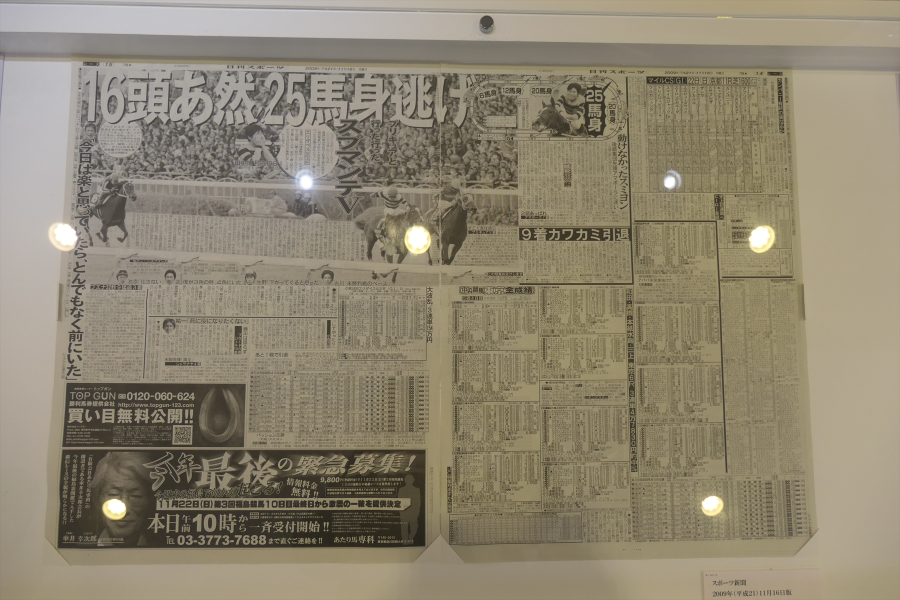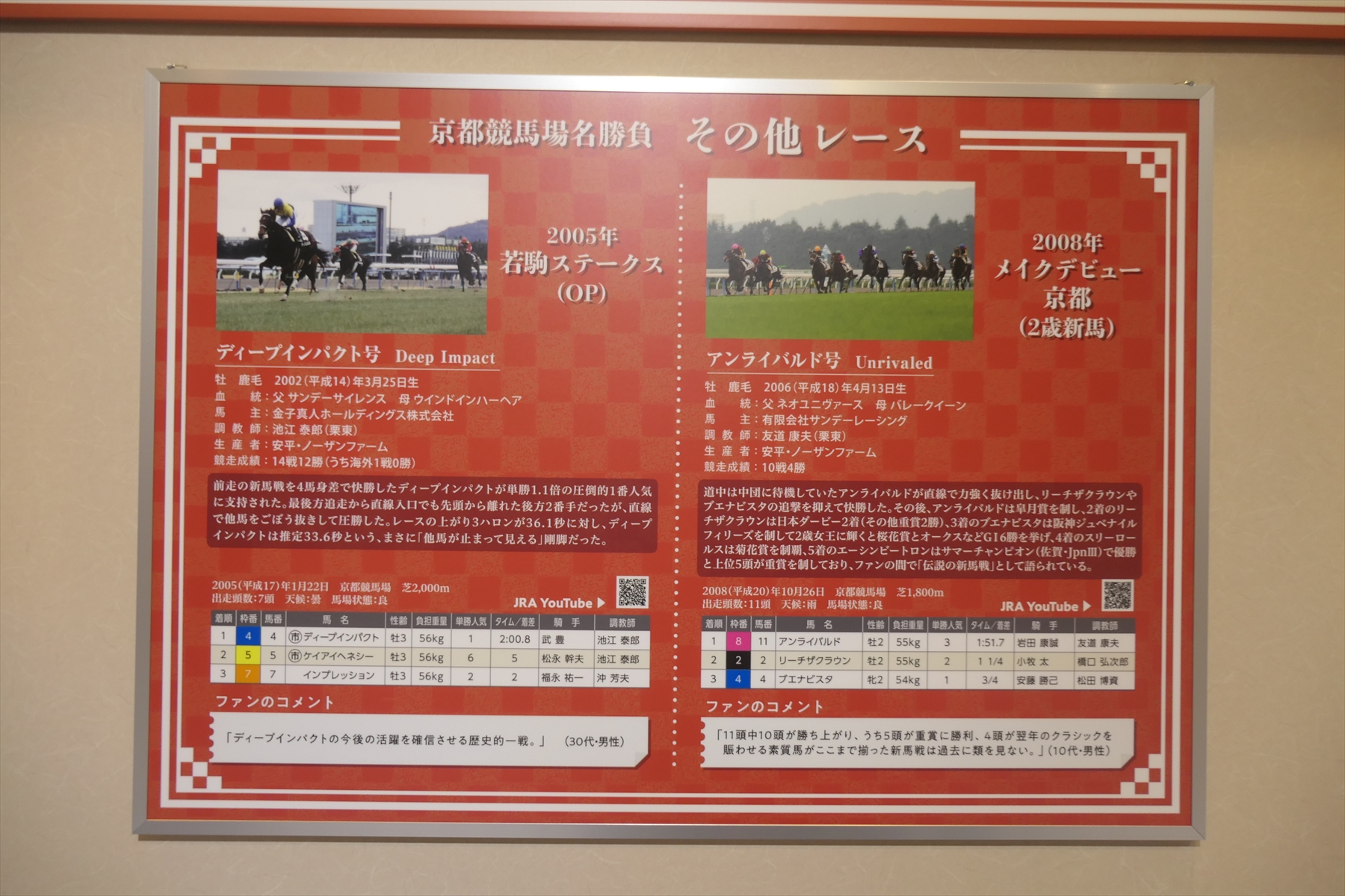 秋華賞とエリザベス女王杯も行われておりますので、それらの展示も。ぶっちゃけ、秋華賞なんかはレースがまったく思い出せない。