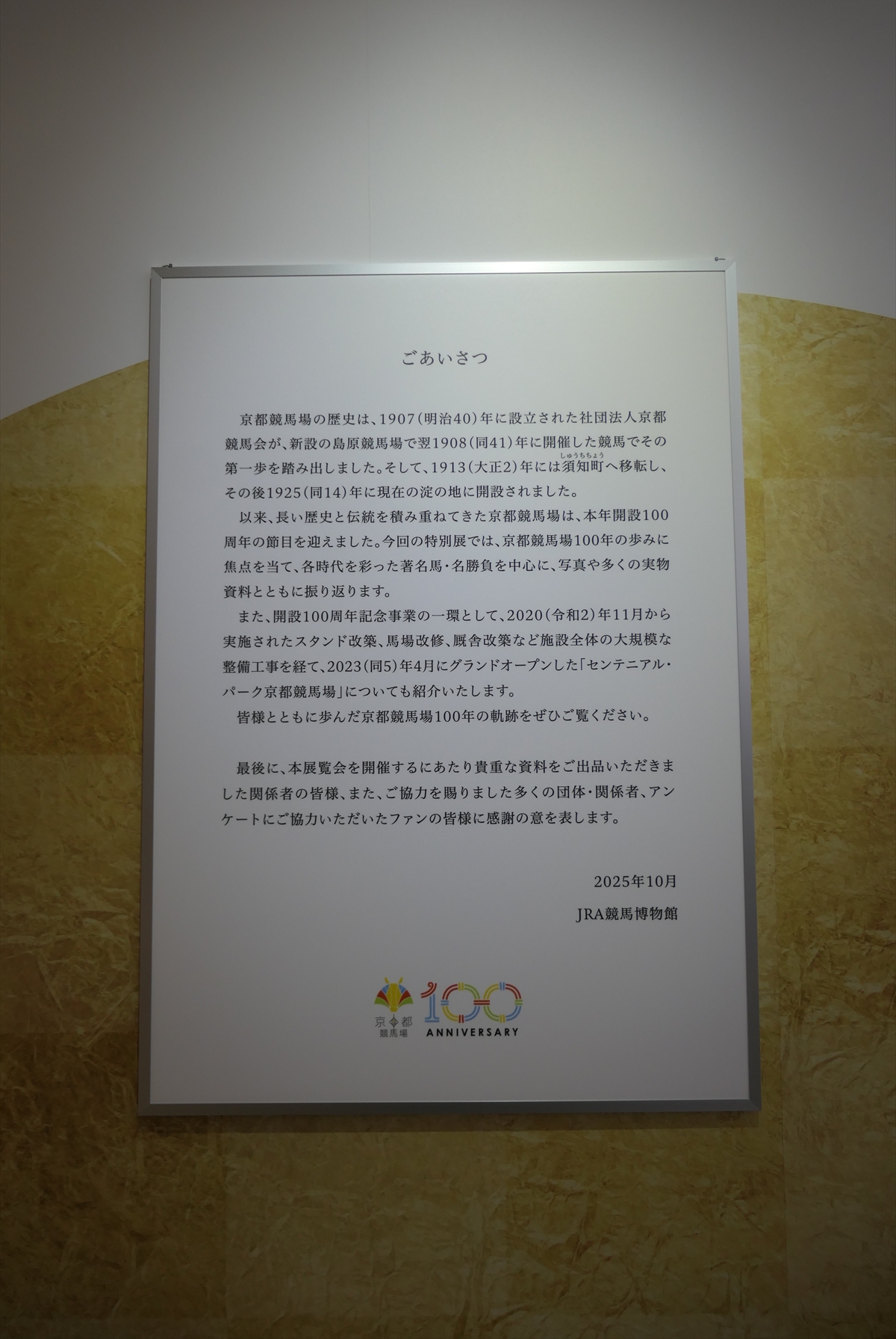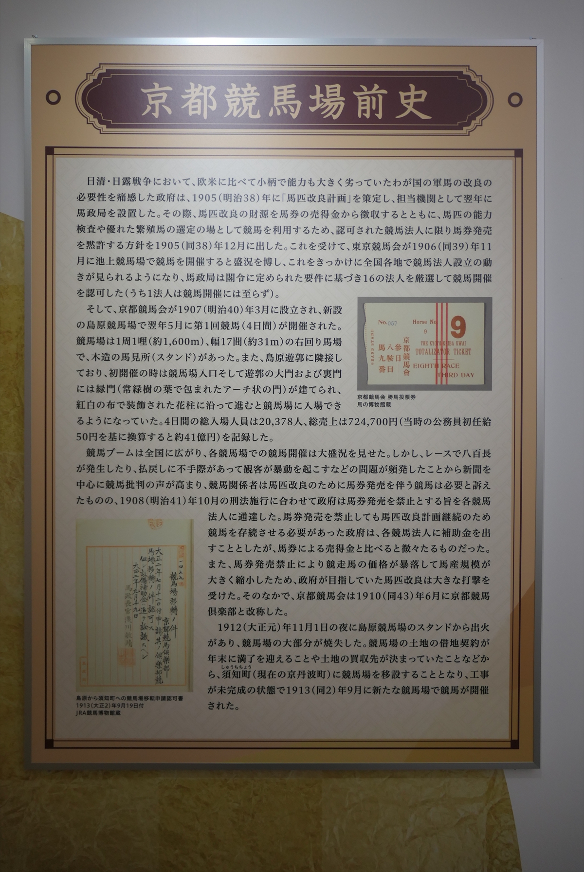 続いて、東京競馬場でおこなわれている京都競馬場100周年記念展へ。