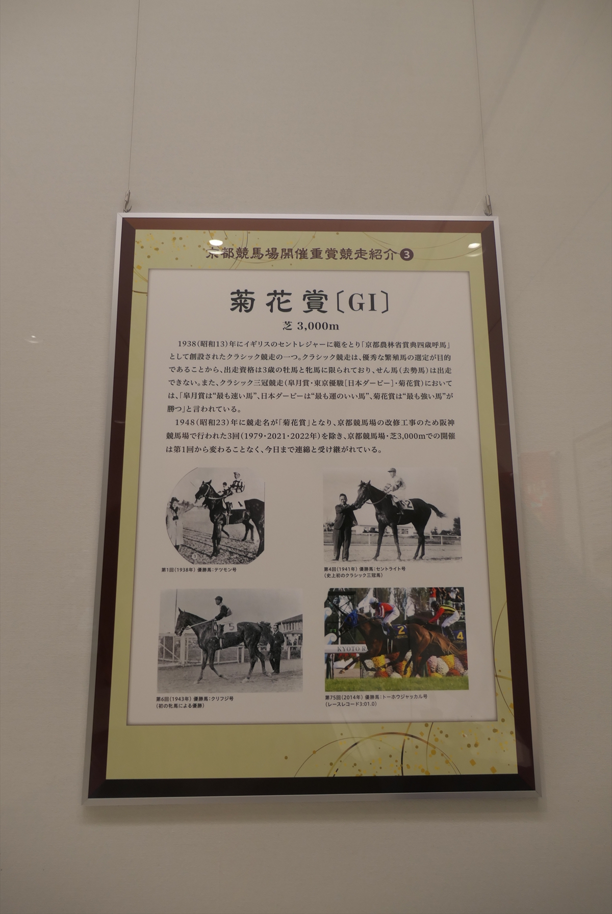展示の構成としては、京都競馬場の通史、名勝負アンケート、重賞紹介という感じです。