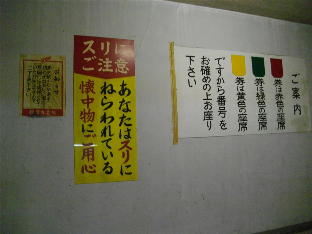 旧指定席の名残のある案内 「懐中物」という表現もナイス |